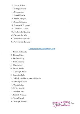 Lista osób zakwalifikowanych do kształcenia w PSM I st. im. F. Chopina w Oleśnicy w roku szkolnym 2021/2022