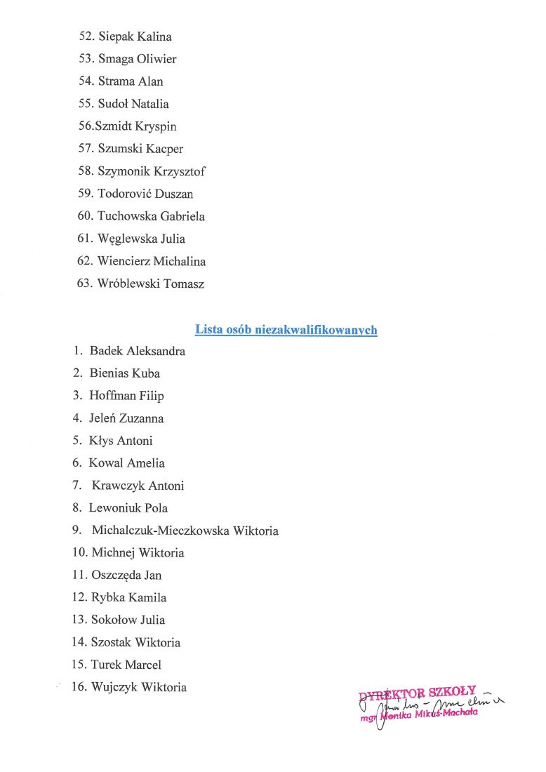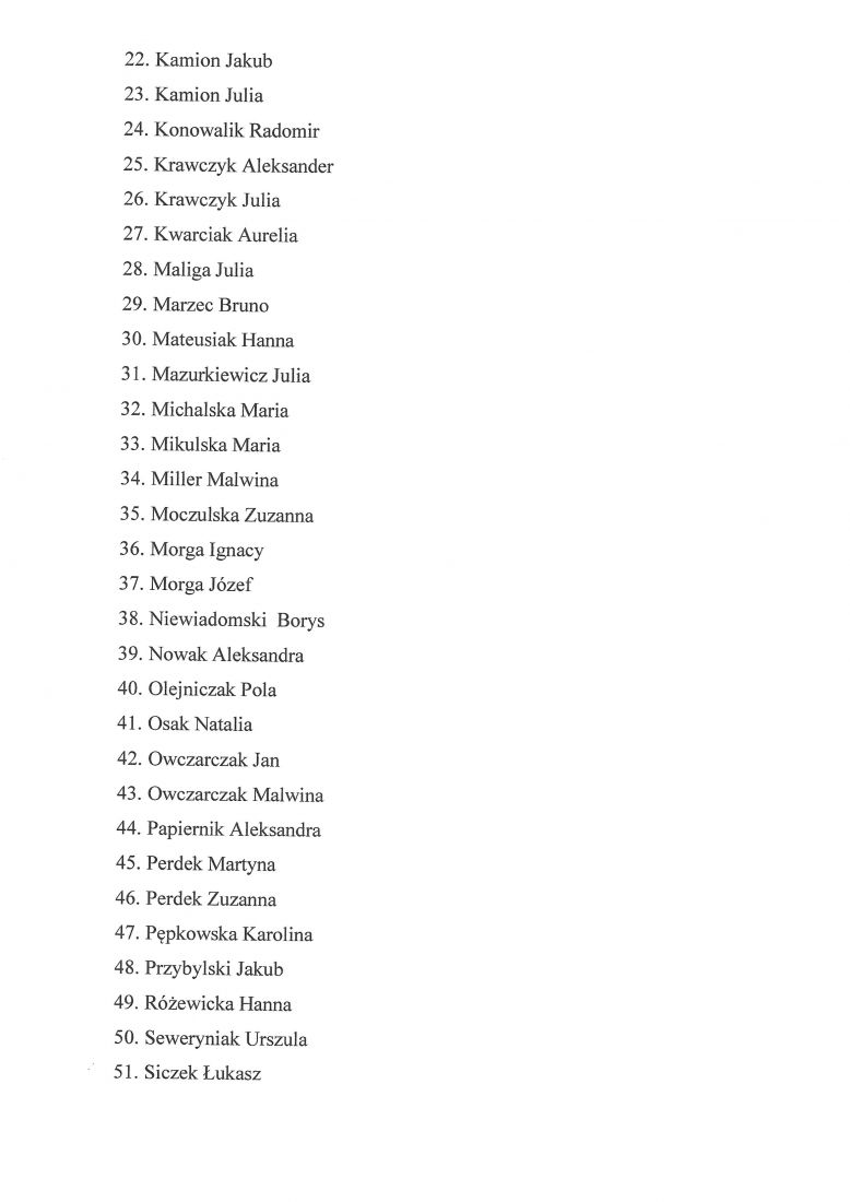 Lista osób zakwalifikowanych do kształcenia w PSM I st. im. F. Chopina w Oleśnicy w roku szkolnym 2021/2022