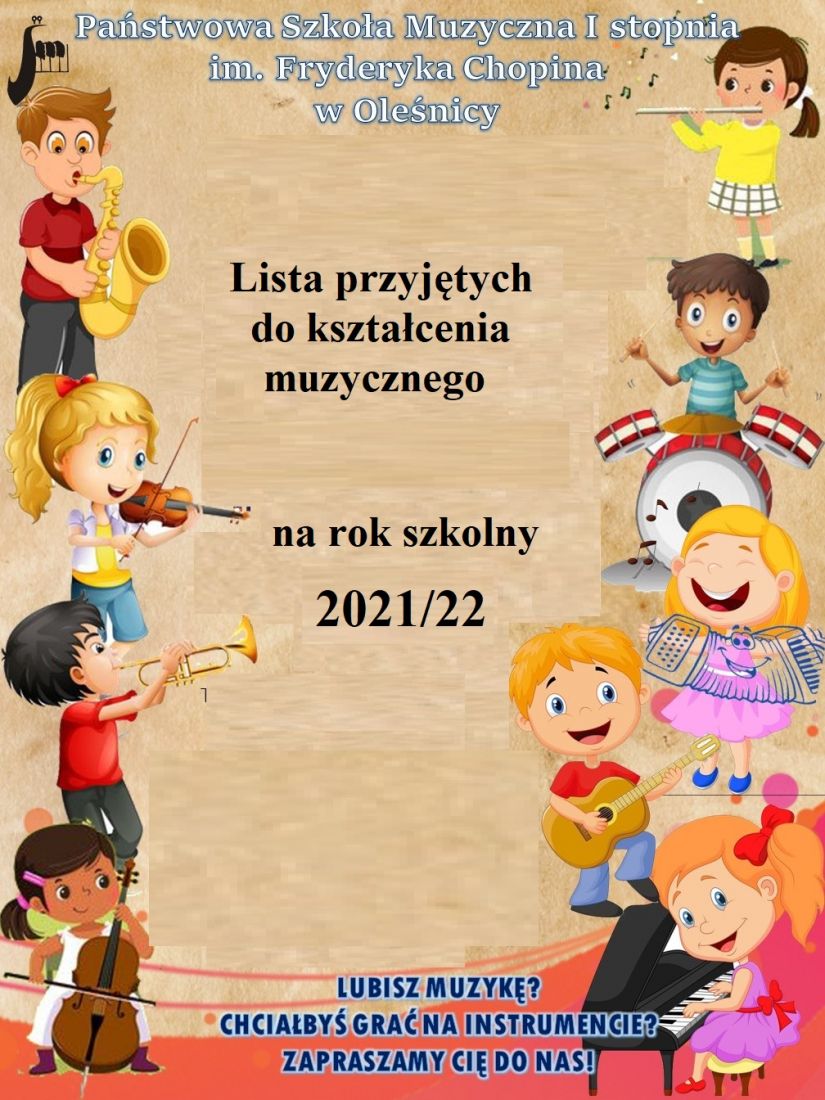 Lista przyjętych do kształcenia muzycznego na rok 2021/2022Aktualności - OgłoszeniaLista przyjętych do kształcenia muzycznego na rok 2021/2022