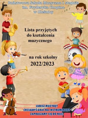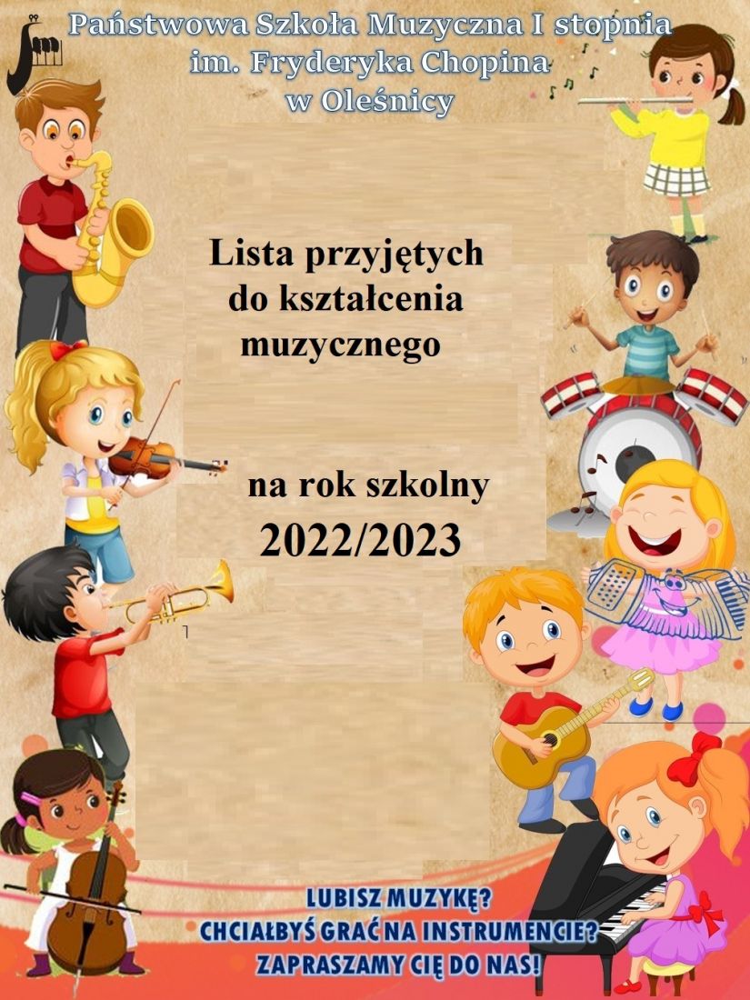 Lista przyjętych do kształcenia muzycznego na rok szkolny 2022/2023Aktualności - OgłoszeniaLista przyjętych do kształcenia muzycznego na rok szkolny 2022/2023